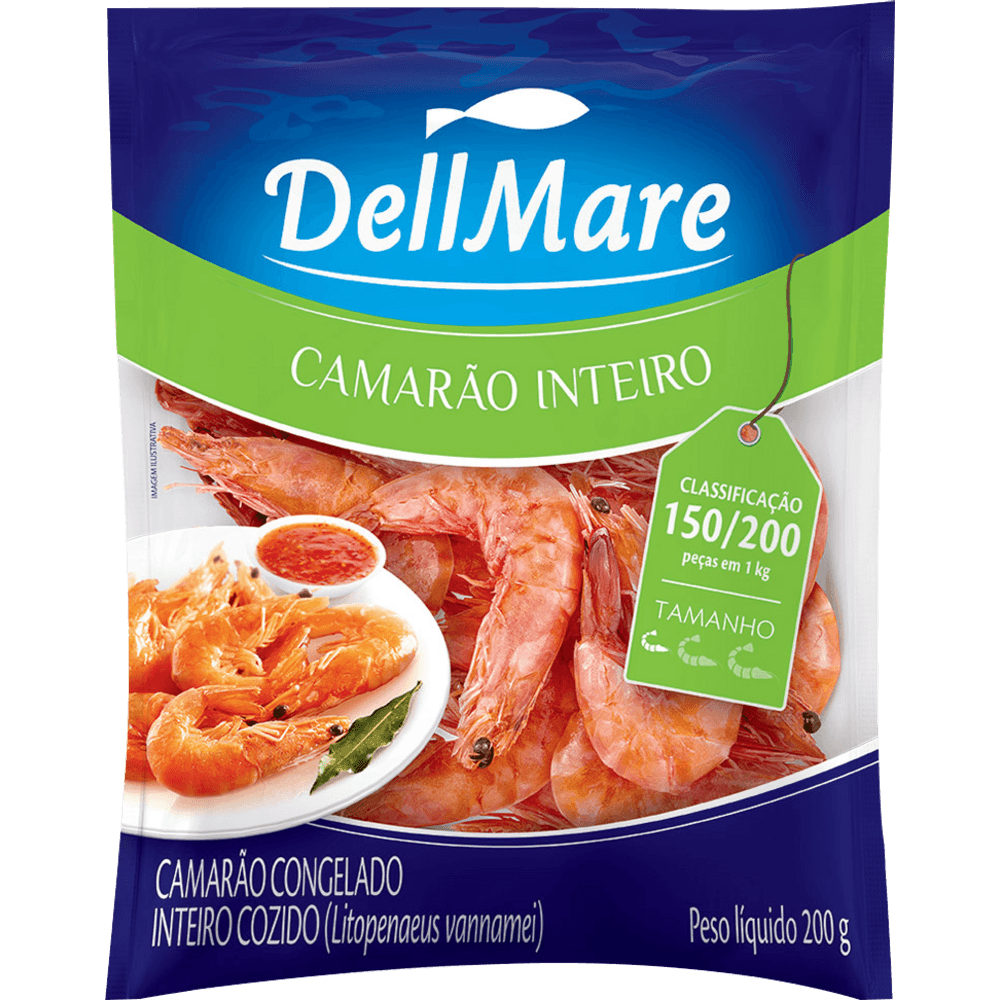 Camarão Dellmare Inteiro Congelado Cozido 150 a 200 Peças Pacote 200 g