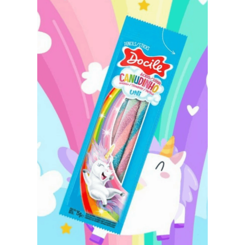 Bala Morango Ácido Canudinho Uni Docile Pacote 15g