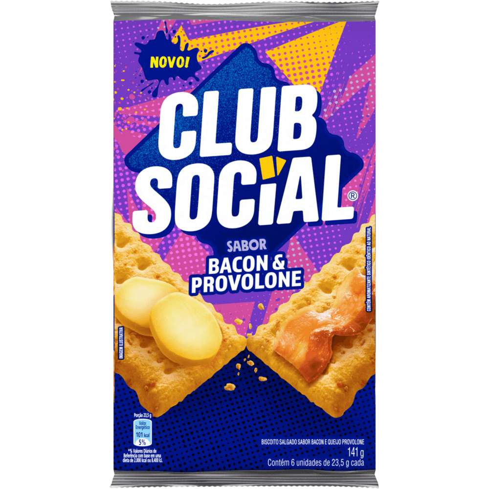 compre agora o biscoito salgado club social regular bacon & provolone! a versão com 6 unidades de 141g é perfeita para sempre ter um snack salgado delicioso para matar sua fome a qualquer hora do dia. prático e versátil para levar aonde quiser. compre já!