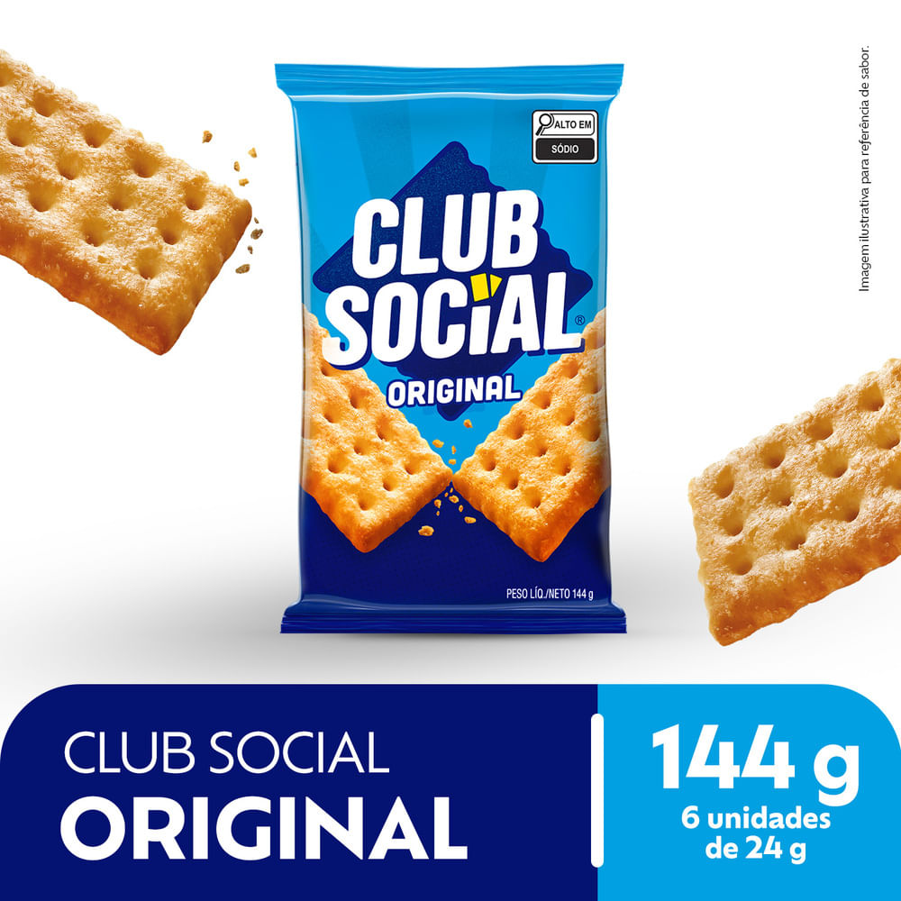 compre agora o biscoito salgado club social original e descubra por que ele é o parceiro perfeito para qualquer hora do dia! crocante, saboroso e delicioso, o biscoito salgado club social é prático para carregar na bolsa ou na mochila, uma opção para compartilhar e que salva na hora do lanche, na caminhada ou no busão. tanto faz se você é do time biscoito salgado ou bolacha, o que importa é que club social acompanha o ritmo do seu corre. a versão multipack do biscoito salgado club social de 144g contém 6 pacotes individuais de 24g cada e combina praticidade e crocância única em cada mordida. experimente também todos os produtos da família club social como o biscoito salgado club social integral. tabela nutricional e alergênicos: veja a tabela nutricional e ingredientes nas imagens. produto com alto teor de sódio.