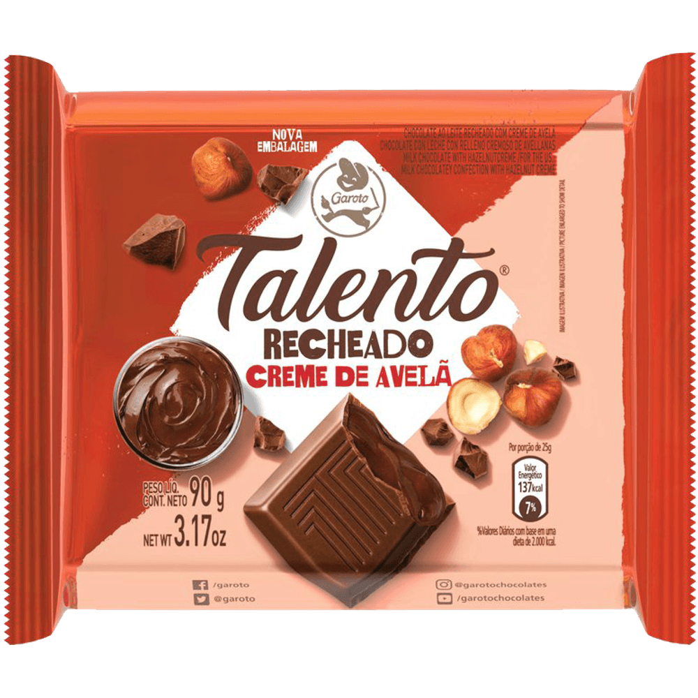 Chocolate GAROTO TALENTO Recheado Creme de Avelã 90g