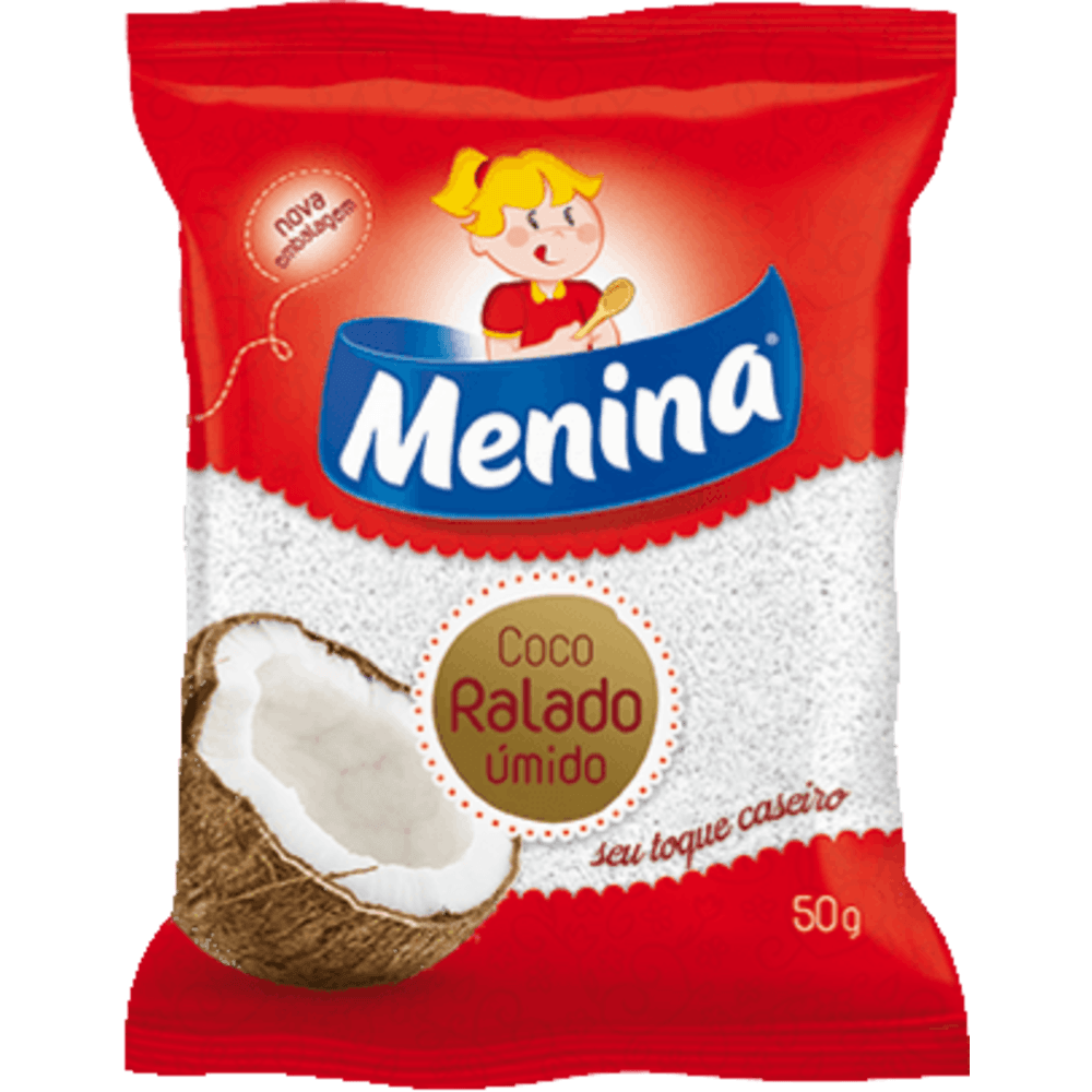 - 1 pacote de coco ralado úmido adoçado menina 50g
