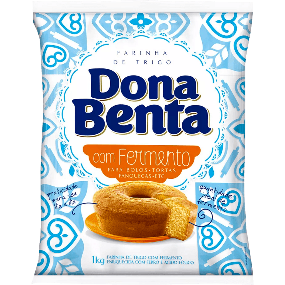 farinha de trigo dona benta com fermento 1kg é um ingrediente essencial para bolos, tortas, pães, pizzas e muito mais. ela possui um sabor bem marcante e é ideal para qualquer tipo de receita que exija um resultado único. a farinha de trigo dona benta com fermento possui um teor nutricional mais alto do que as demais farinhas, oferecendo os melhores nutrientes para o seu preparo. além disso, ela é pronta para uso, dispensando a pré-mistura.