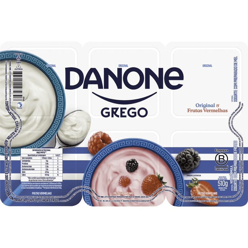 Iogurte Grego Danone Original e Frutas Vermelhas 510g 6 unidades
