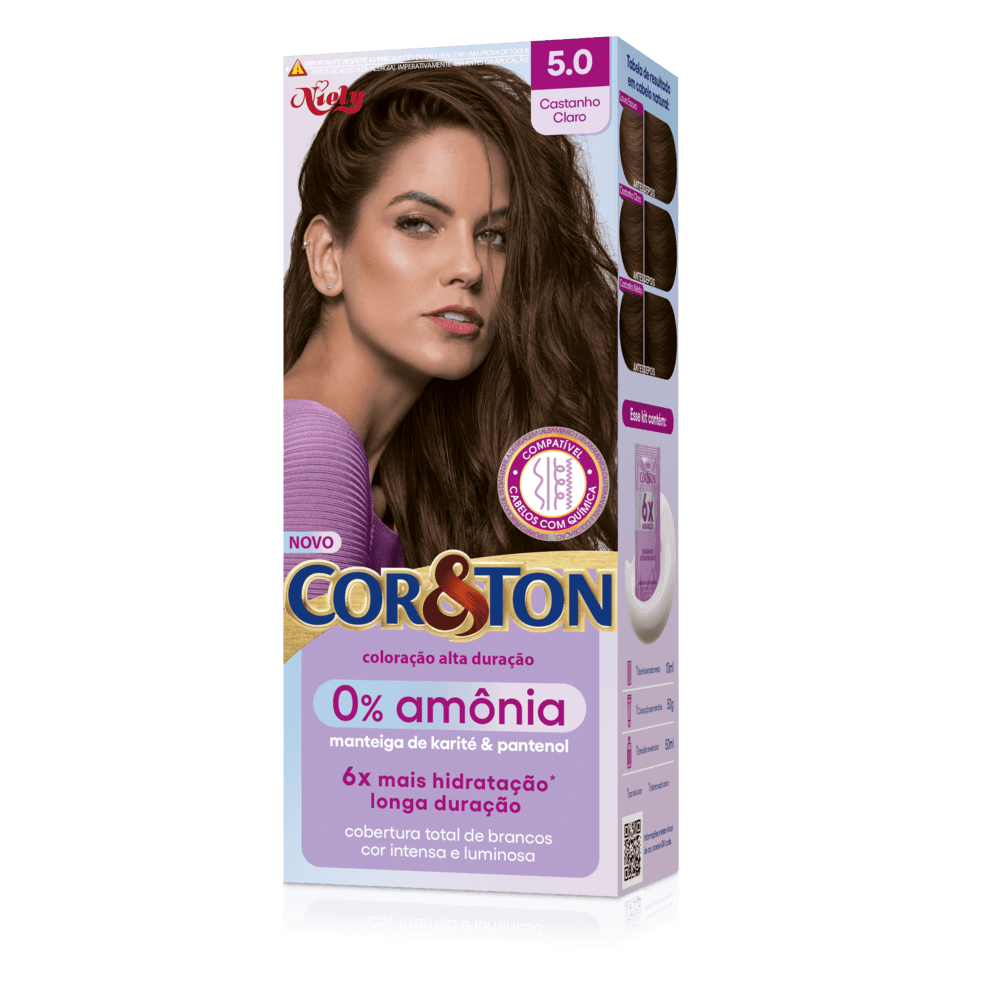 Kit Coloração Creme 5.0 Castanho Claro Manteiga de Karité & Pantenol Niely Cor&Ton