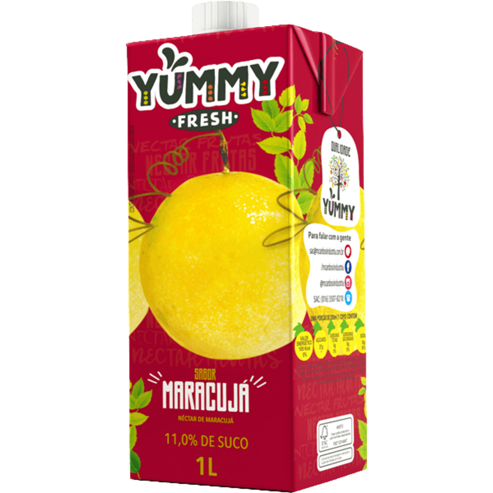 o néctar yummy maracujá 1 litro é um delicioso produto para quem gosta de combinar as frutas mais cítricas com a bebida. é feito com a combinação de suco concentrado de maracujá 100% natural e açúcar. o resultado é uma bebida refrescante e saudável que deslava a boca.