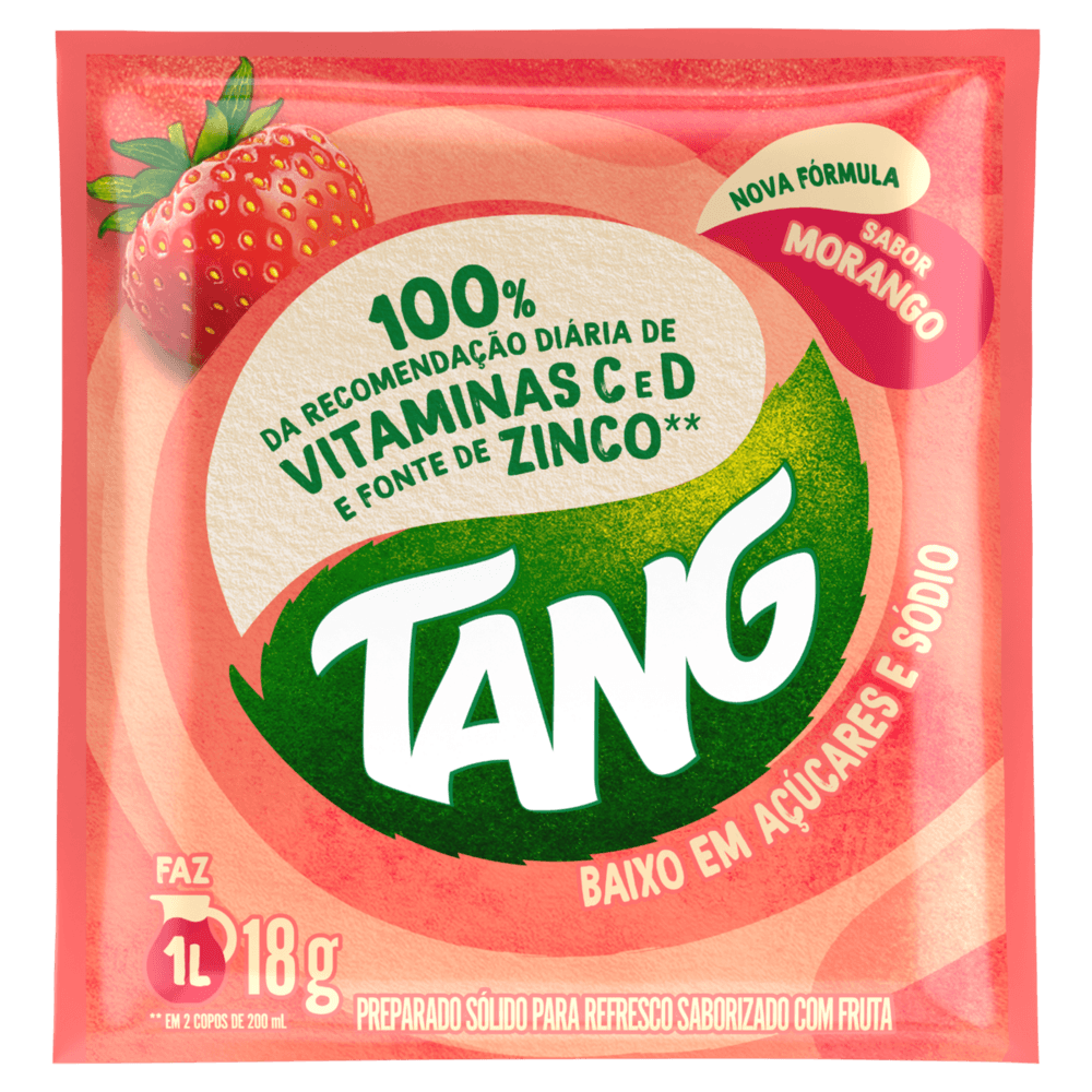 história: o novo tang 100% da recomendação diária de vitamina c, d e fonte de zinco vem para renovar o mercado de bebidas em pó trazendo nutrientes importantes para o funcionamento do corpo. sendo uma opção descomplicada para ajudar no cuidado da família, é só preparar e em 2 copos já tem a quantidade necessária de vitamina c e d para ser consumida no dia.