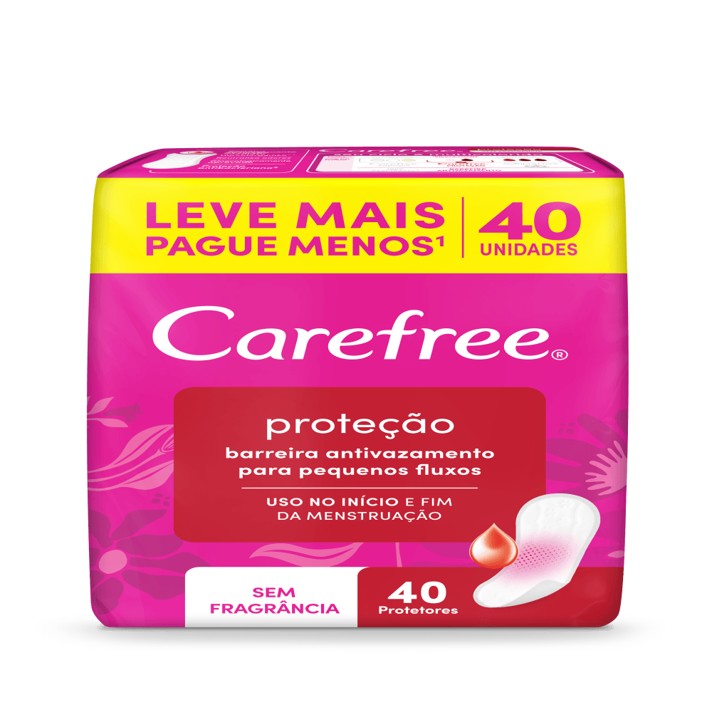 descrição de marketing: carefree proteção é perfeito para o comecinho e finalzinho da menstruação. sua barreira protetora retém leves fluxos e pequenos escapes, mantendo a calcinha limpa e seca. escolha a sua versão preferida: com ou sem fragrância.