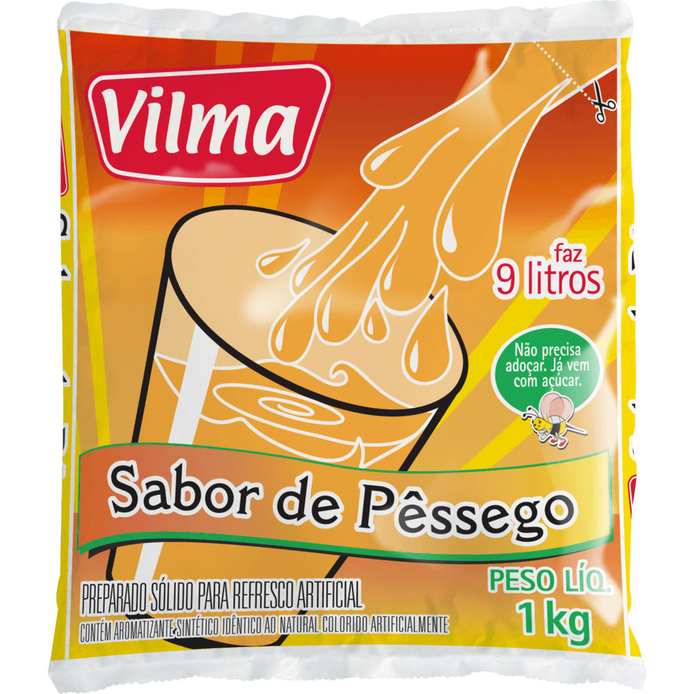 REFR PO VILMA 1KG-PC PESSEGO - Refresco em Pó Vilma Pêssego 1kg