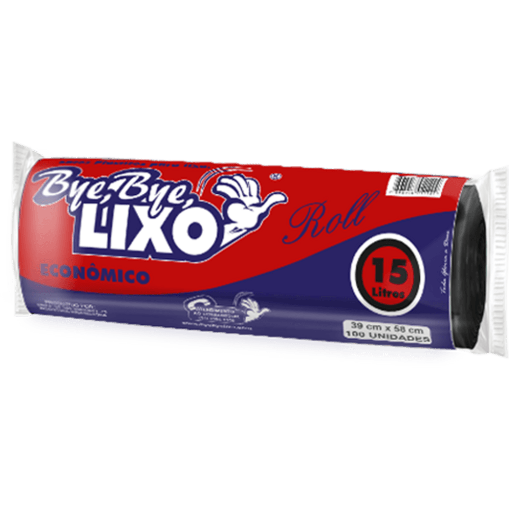 Saco de Lixo Econômico Bye Bye Lixo Rolo 15 Litros 60 Unidades