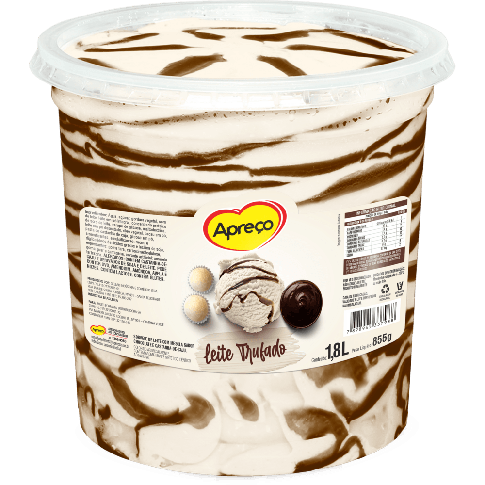sorv apreco 1,8l-pt leite trufado - um produto delicioso para satisfazer e deixar seus momentos mais especiais! a sorv apreco oferece a você dois litros de leite trufado, saboroso e cremoso, para que você possa aproveitar todos os dias momentos de prazer com os seus amigos e familiares. o produto é preparado com ingredientes naturais e embalado em uma lata aço inox para que sua qualidade possa ser preservada por muito mais tempo.
