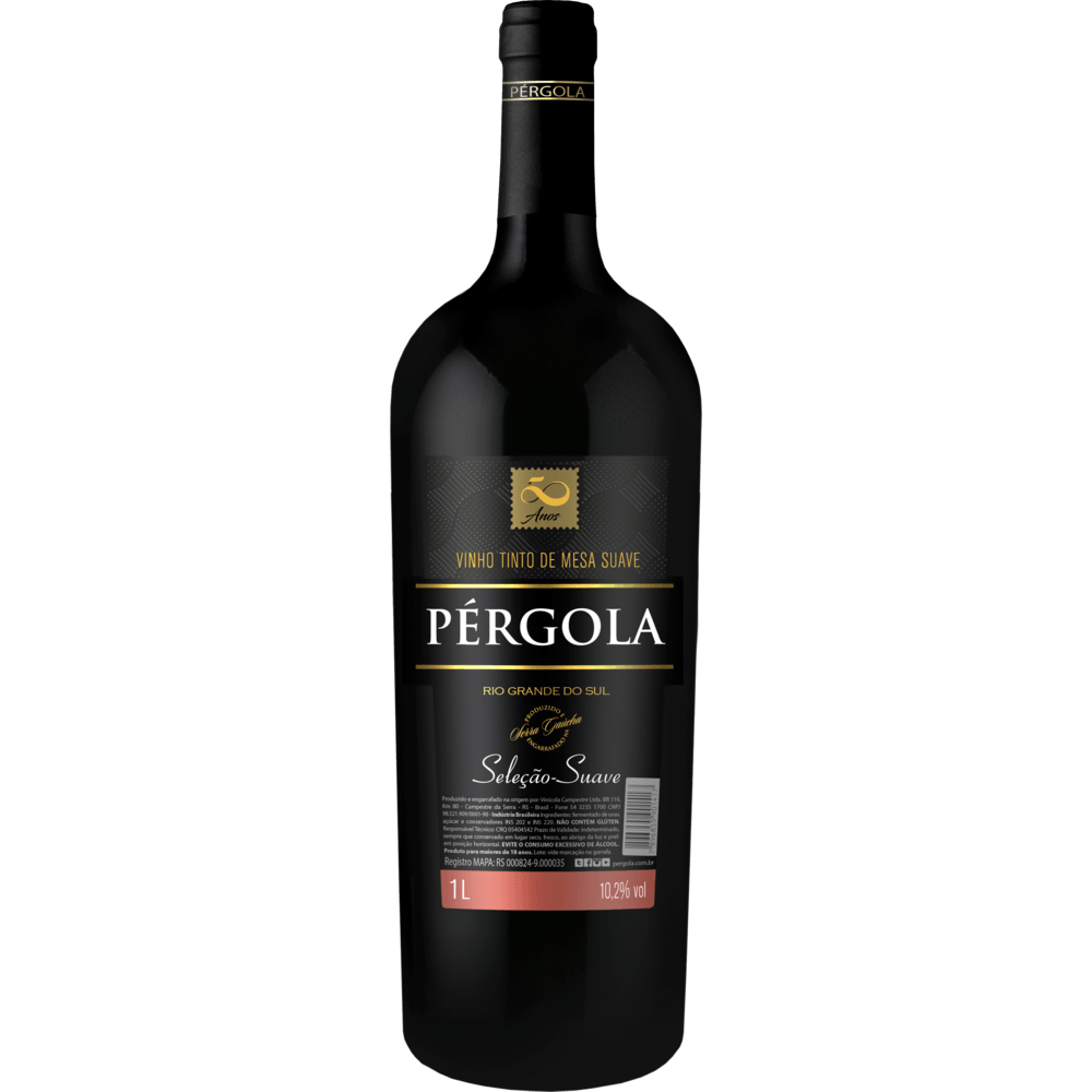 o vinho brasileiro tinto suave seleção pérgola serra gaúcha 1l é um excelente acompanhamento para pratos à base de carne, frutos do mar, saladas ou queijos suaves. todos os ingredientes deste vinho são produzidos na serra gaúcha como o resultado de uma produção cuidadosa e artesanal que resulta em um vinho tinto refinado e suave.